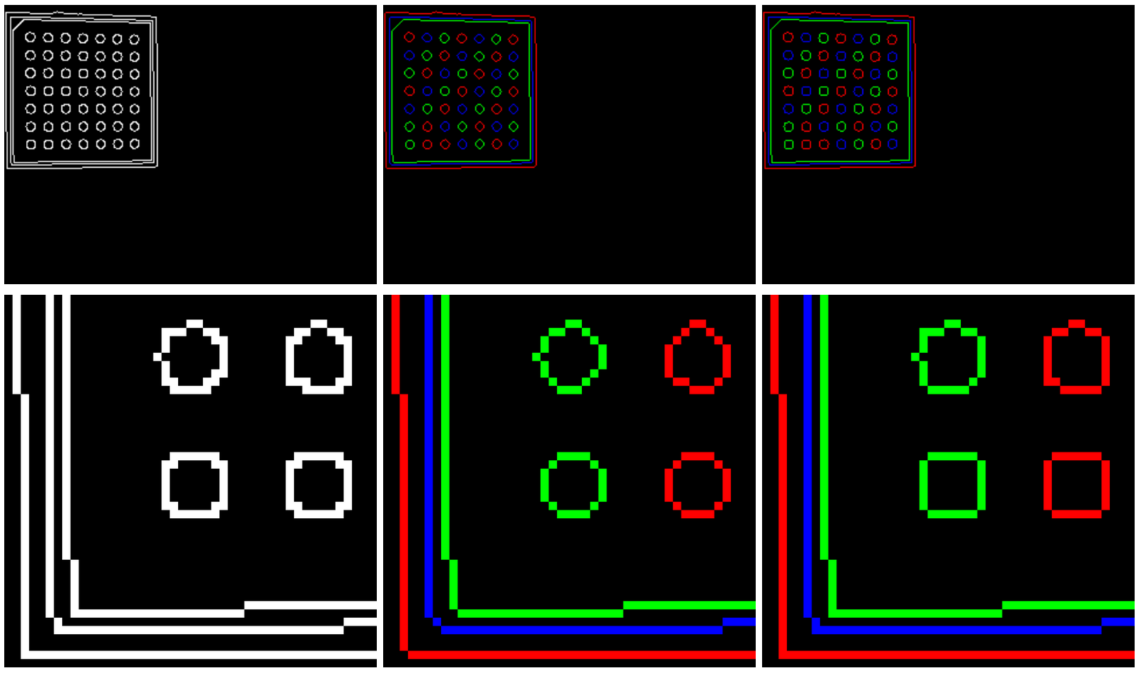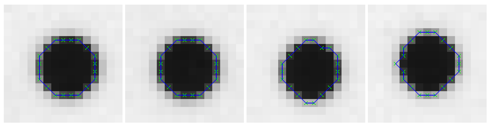 Some pixel precise edges extracted using the built-in cv::canny and cv::findContours operators are as illustrated below: